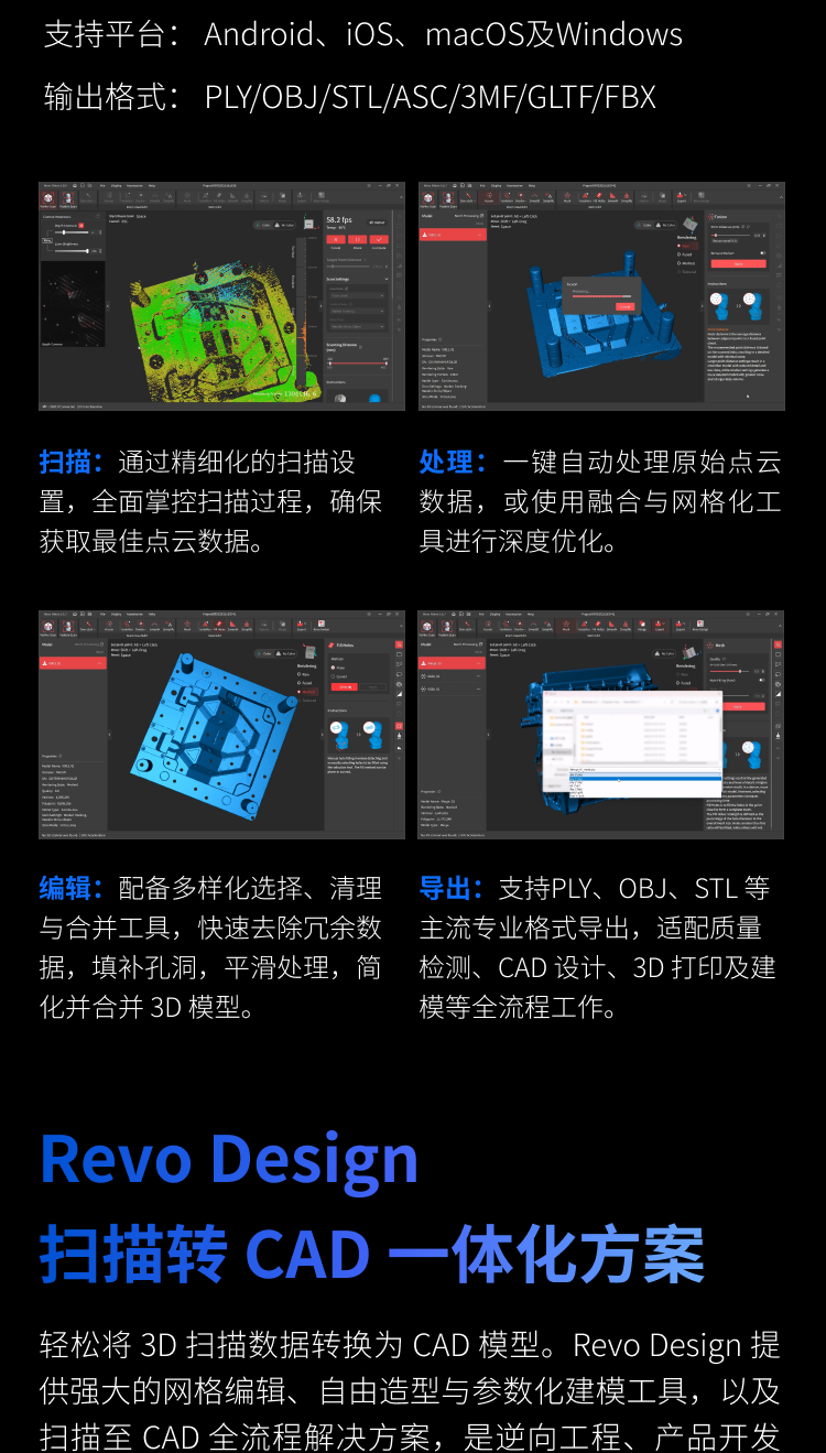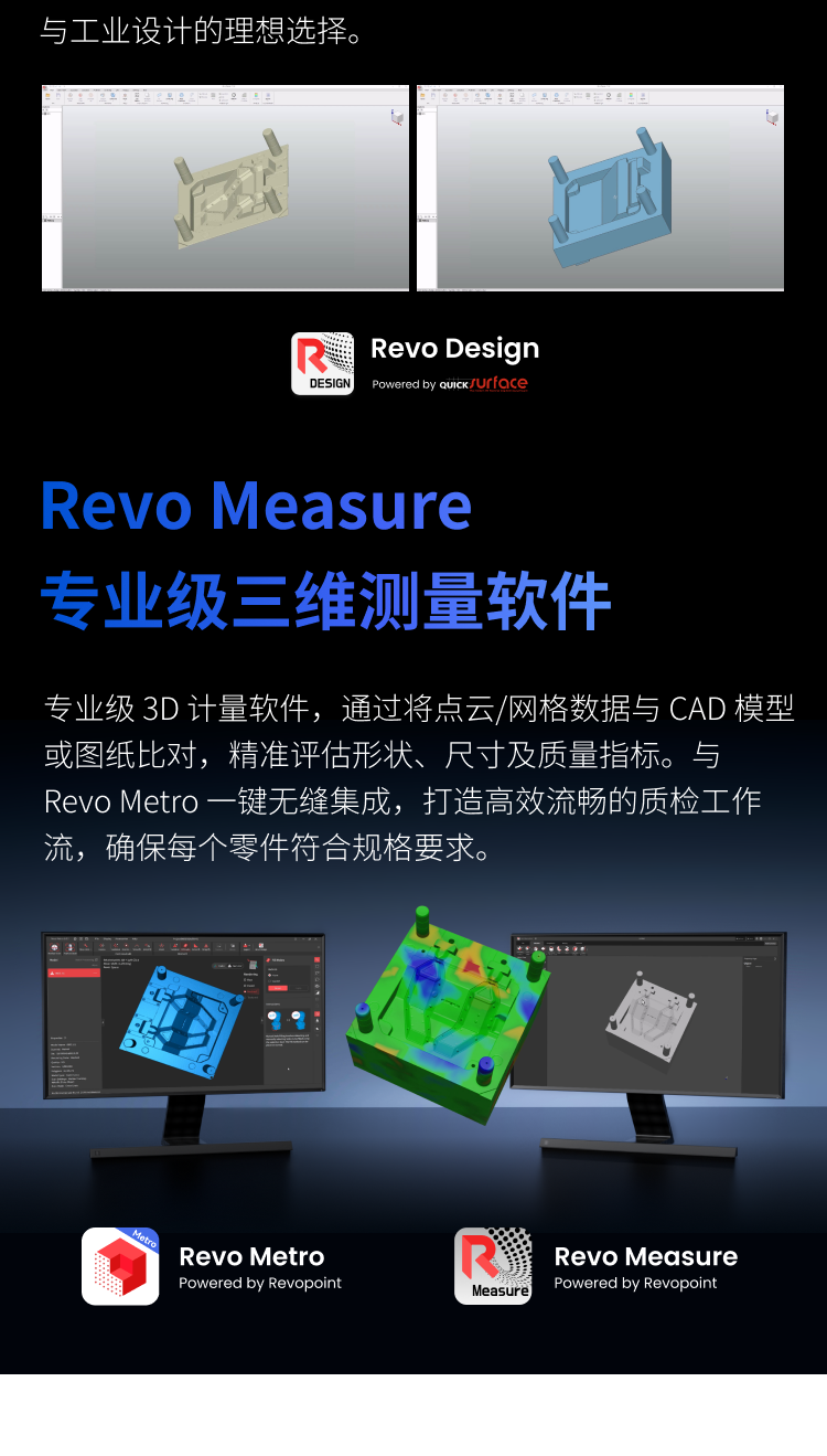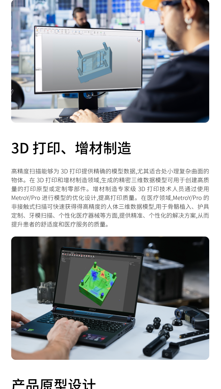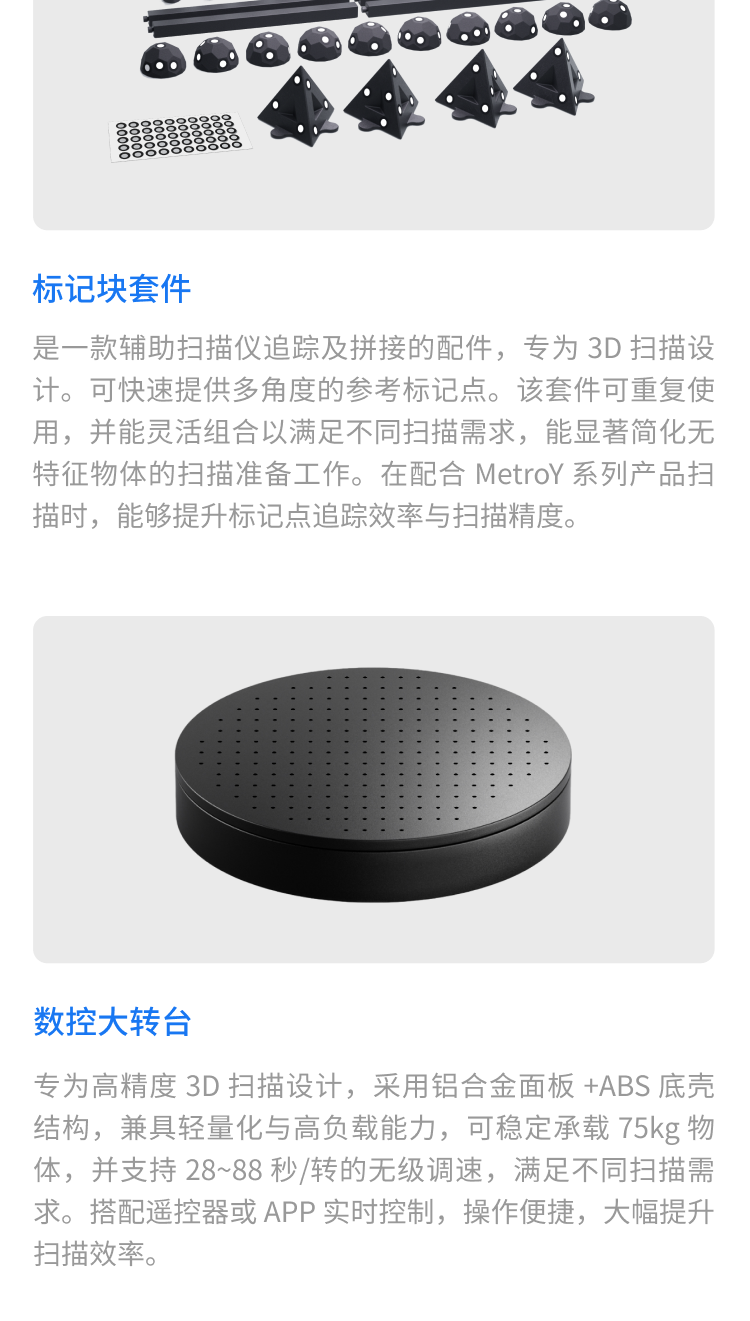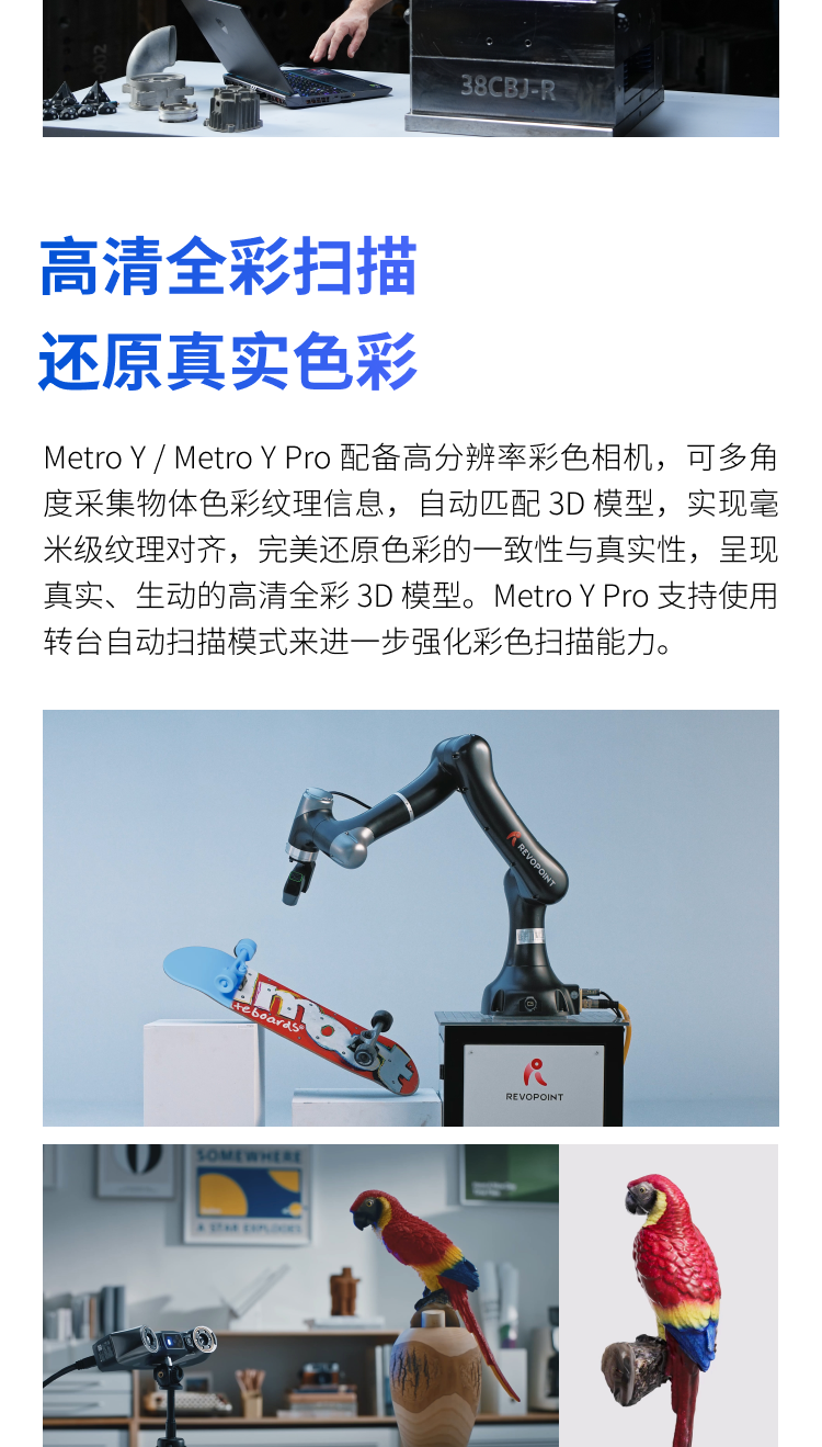 Metro Y专为中小型工件打造系列配备三种蓝色激光扫描模式,无论是复杂几何结构还是高难度扫描表面,皆可轻松应对。MetroY Pro 新增两种全场蓝光结构光扫描模式,拓展扫描灵活性,满足更高需求。MetroY Pro的 5 种扫描模式可有效处理复杂几何形状和表面: 激光交叉多线扫描、平行多线精细扫描、单线深孔扫描及全场蓝光结构光四种手持扫描模式和一种转台自动扫描模式。