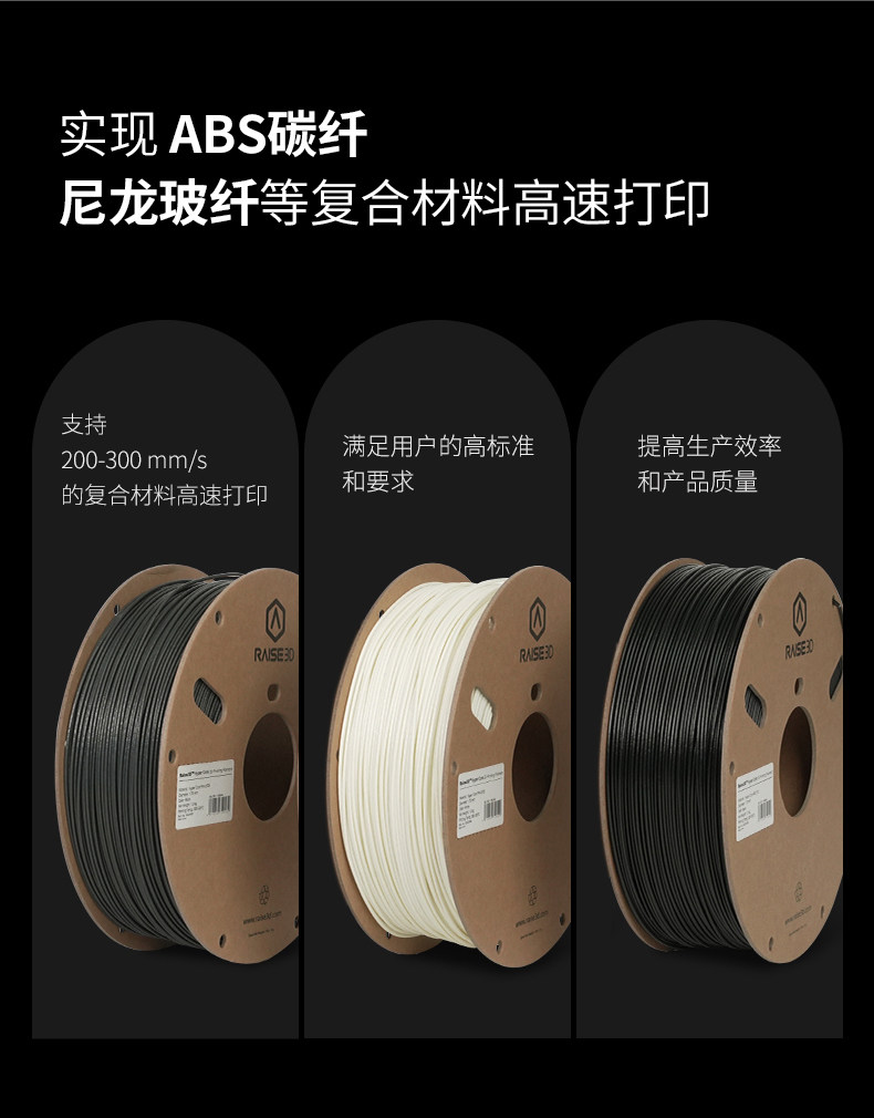 Raise3D For3 Plus HS全新自主研发推出的双喷头3D打印机Pro3系列可满足生产以及多尺寸快速原型开发的需求,具有高精度、稳定运行等特点。Pro3系列与EVE智能助手,ideaMaker切片软件,RaiseCloud远程控制软件的配合为您带来更智能、简易的打印体验。 无论是机械车间的固定装置、假肢,还是定制的自行车框架。